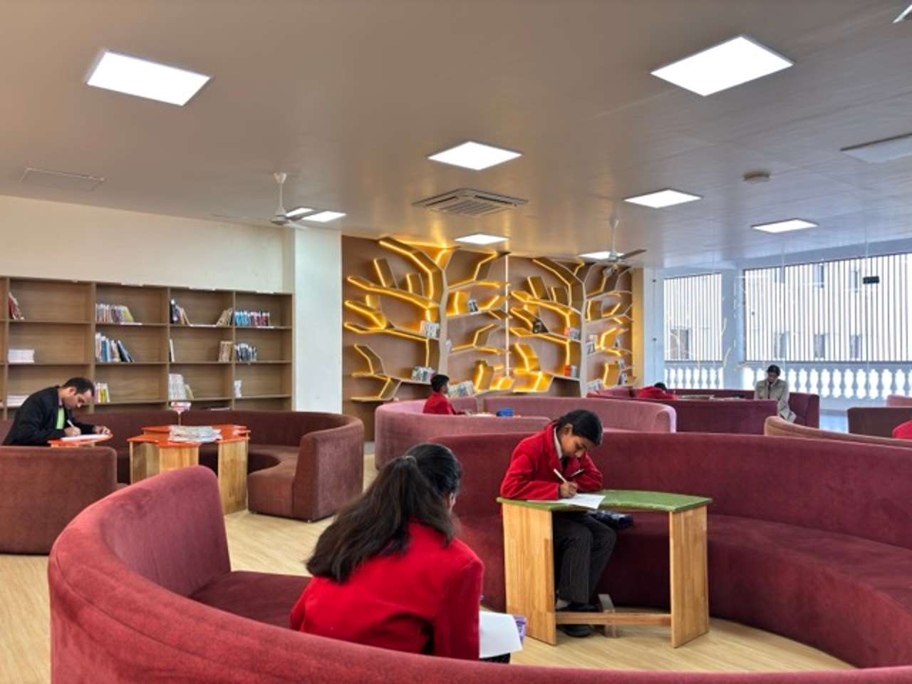 Our library is one of most spacious, and welcoming space of our school. The library has been designed to encourage curiosity, exploration and a deep love of learning in all its users. We have an open access system to make the library more accessible to students and teachers and an excellent collection of textbooks, reference books, encyclopedias, fiction and non-fiction texts, dictionaries of different languages taught at school, story books, Comic books, biographies, magazines, and other academic resources. A good number of audio-visual resources also supplement the collection. The rich collection of resources makes it thoroughly colourful, thereby encouraging our learners to always find their way into it, and immerse into the joy of reading.
